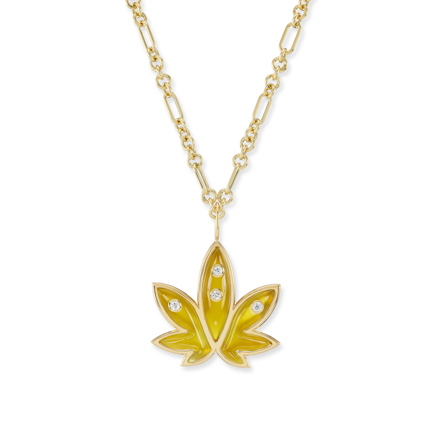 Brent Neale x Edie Parker: Carved Yellow Chalcedony Cannabis Pendant