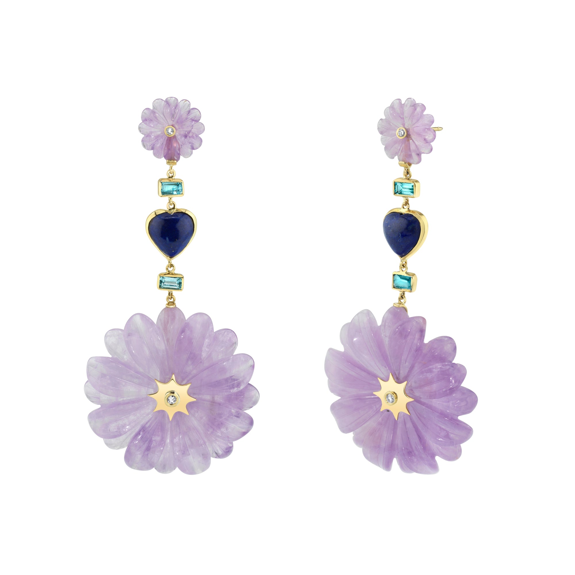 Double Amethyst Wildflower & Heart Drop Earrings