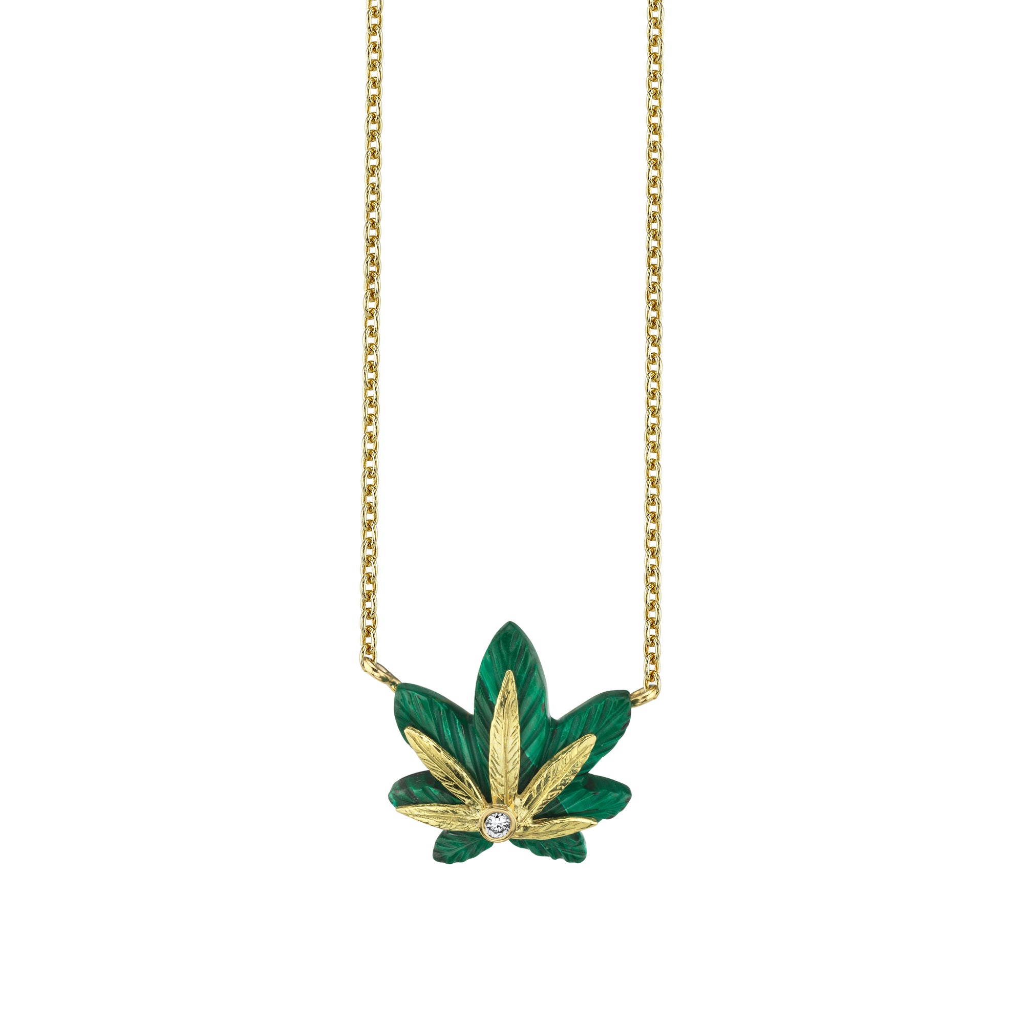 Brent Neale x Edie Parker: Carved Malachite & Turquoise Cannabis Pendant