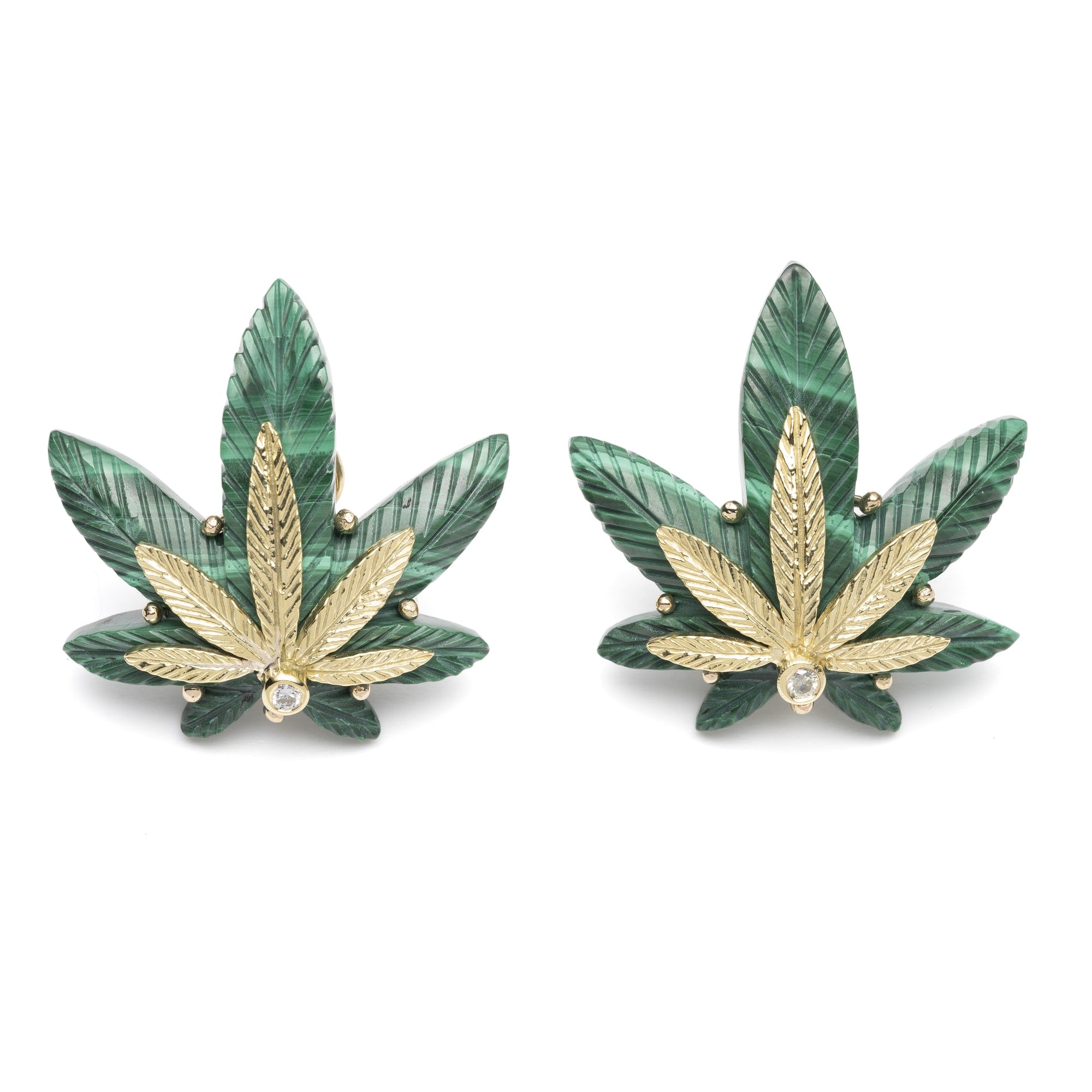 18K Yellow Gold, Carved Malachite, Diamonds (