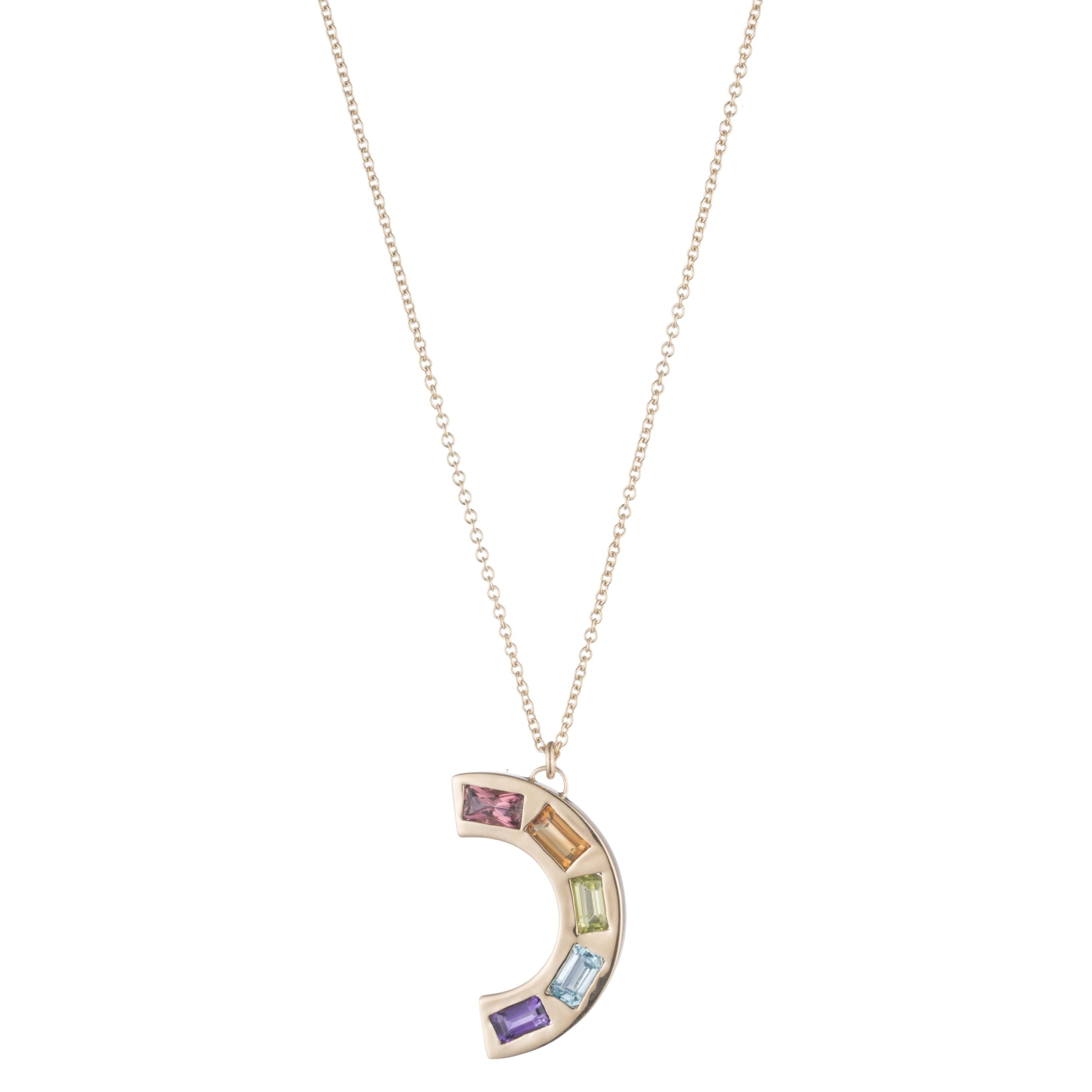 18K Yellow Gold, Pink Tourmaline, Citrine, Peridot, Blue Topaz, Amethyst (0.24ct each)Dimensions: 18" Chain with 1" Drop