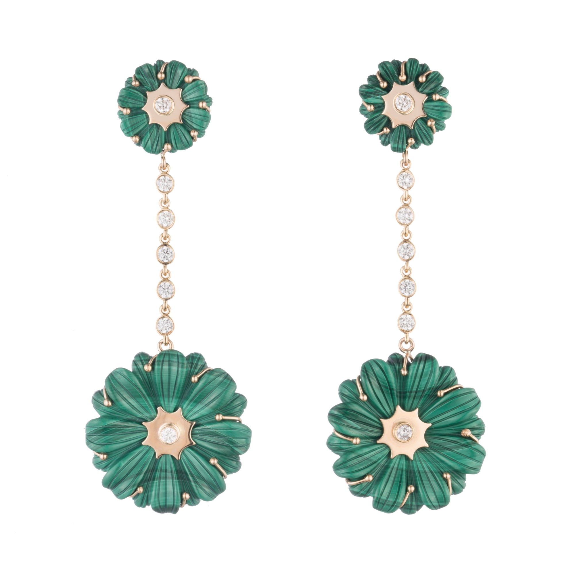 18K Yellow Gold, Carved Malachite (79.20cttw), Diamonds (1.00cttw)
