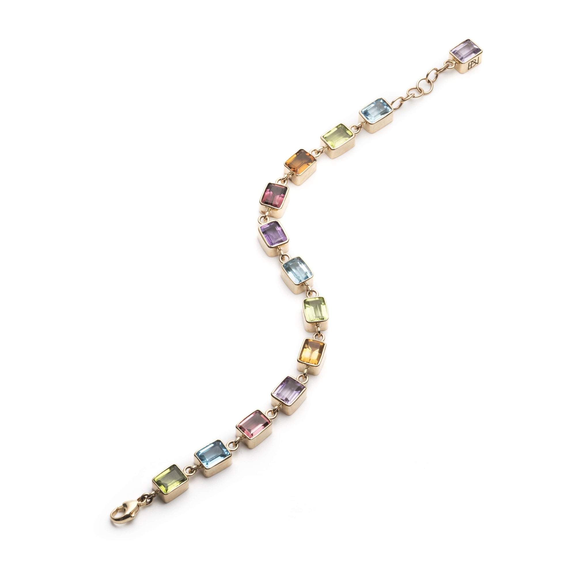 18K Yellow Gold, Pink Tourmaline (3.50cttw), Citrine (3.50cttw), Peridot (5.25cttw), Amethyst (5.25cttw), Blue Topaz (5.25cttw)Dimensions: 7" Long