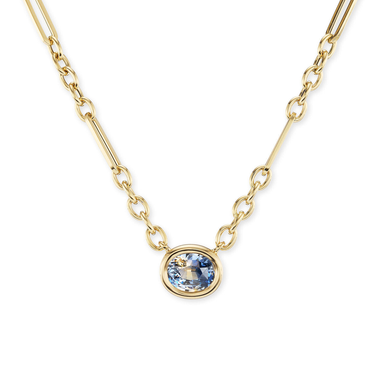 One-of-a-Kind Single Blue-Yellow Sapphire Pillow Pendant on a Mixed Link Chain