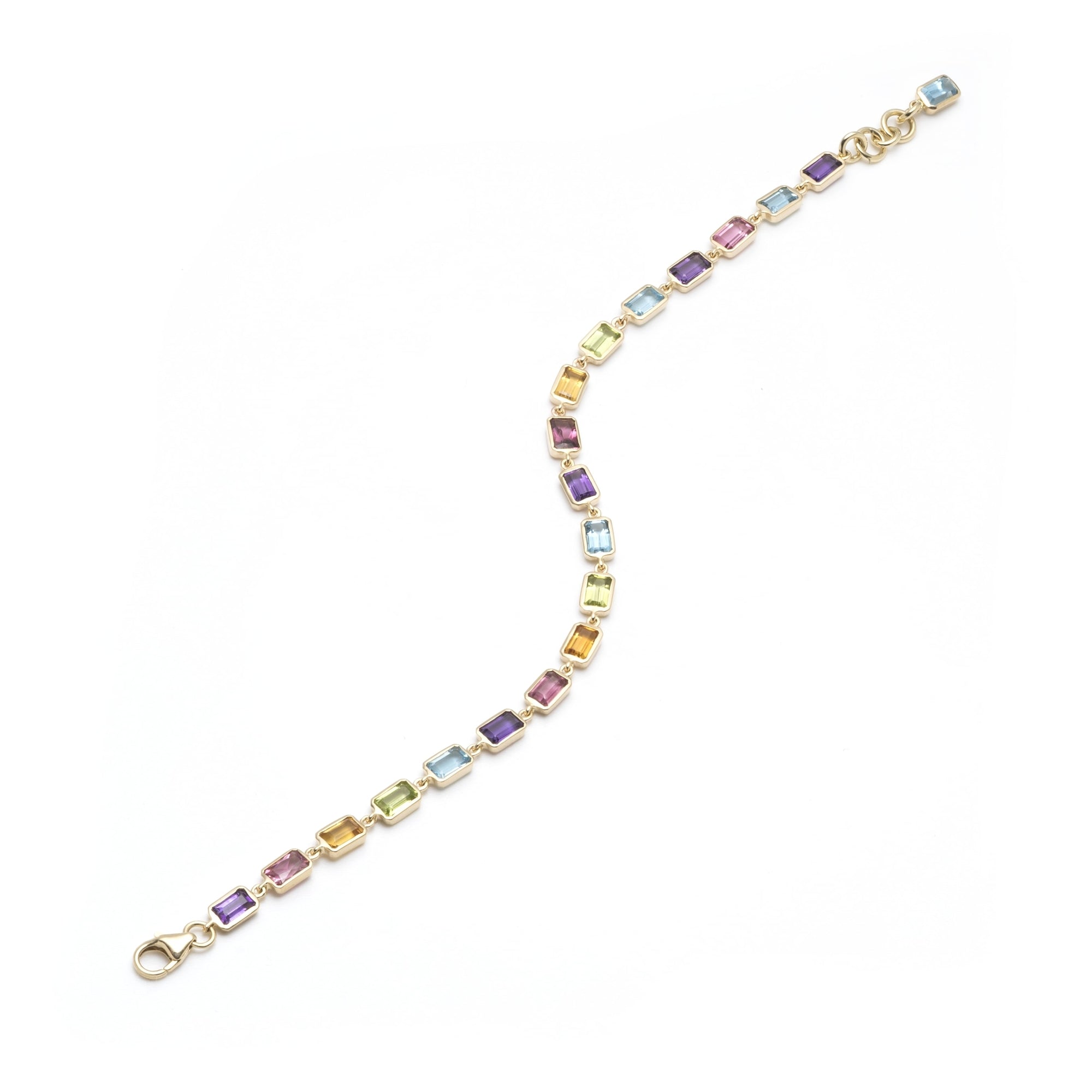 18K Yellow Gold, Pink Tourmaline (4), Citrine (3), Peridot (3), Amethyst (5), Blue Topaz (5) (0.24ct each)Dimensions: 6.75" Long with 1/2" extender