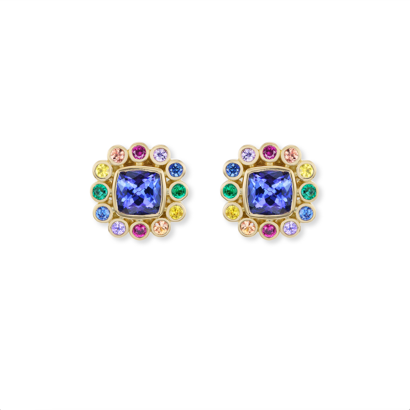 Tanzanite Wildflower Earrings with Rainbow Petals