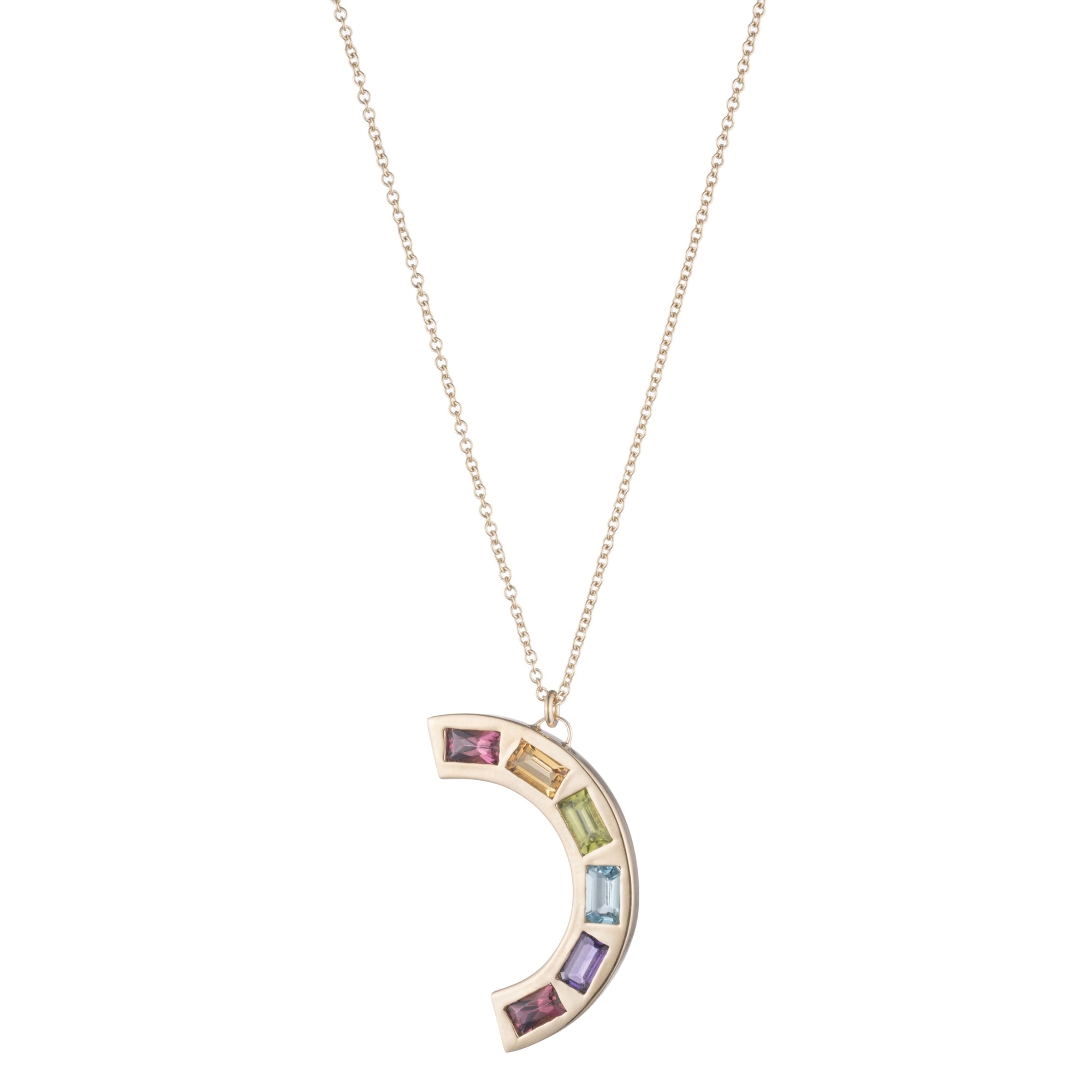 18K Yellow Gold, Pink Tourmaline (2), Citrine, Peridot, Blue Topaz, Amethyst (0.24ct each)Dimensions: 18" Chain with 1.13" Drop